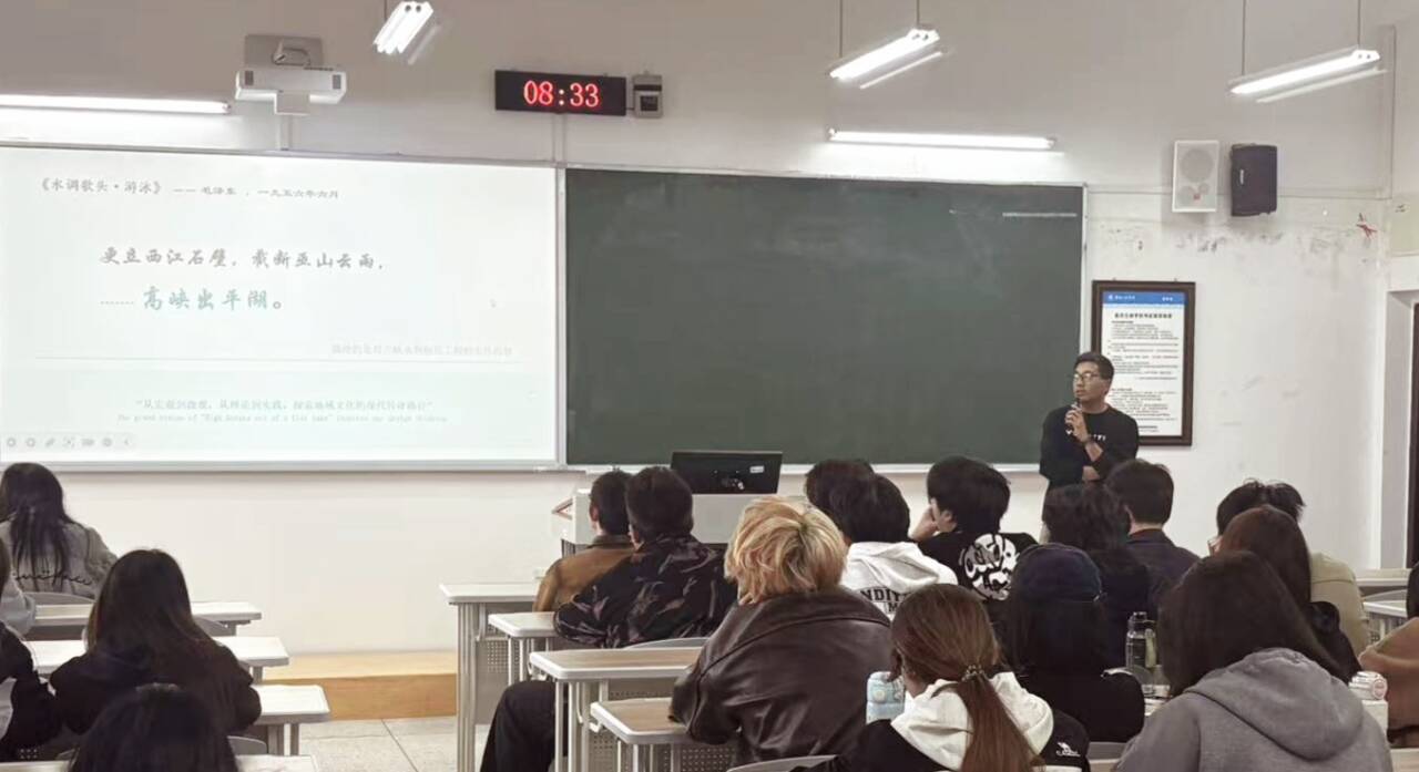 郑峰老师从毛泽东诗词《水调歌头·游泳》中“高峡出平湖”的壮阔意象切入,带领同学们走进峡江的山水与记忆。从夔门的雄奇险峻,到高峡平湖的碧波浩渺,从消落带的生态律动,到百万移民的家国情怀——一幅“险峻与温柔、古老与现代交织”的视觉长卷徐徐展开。