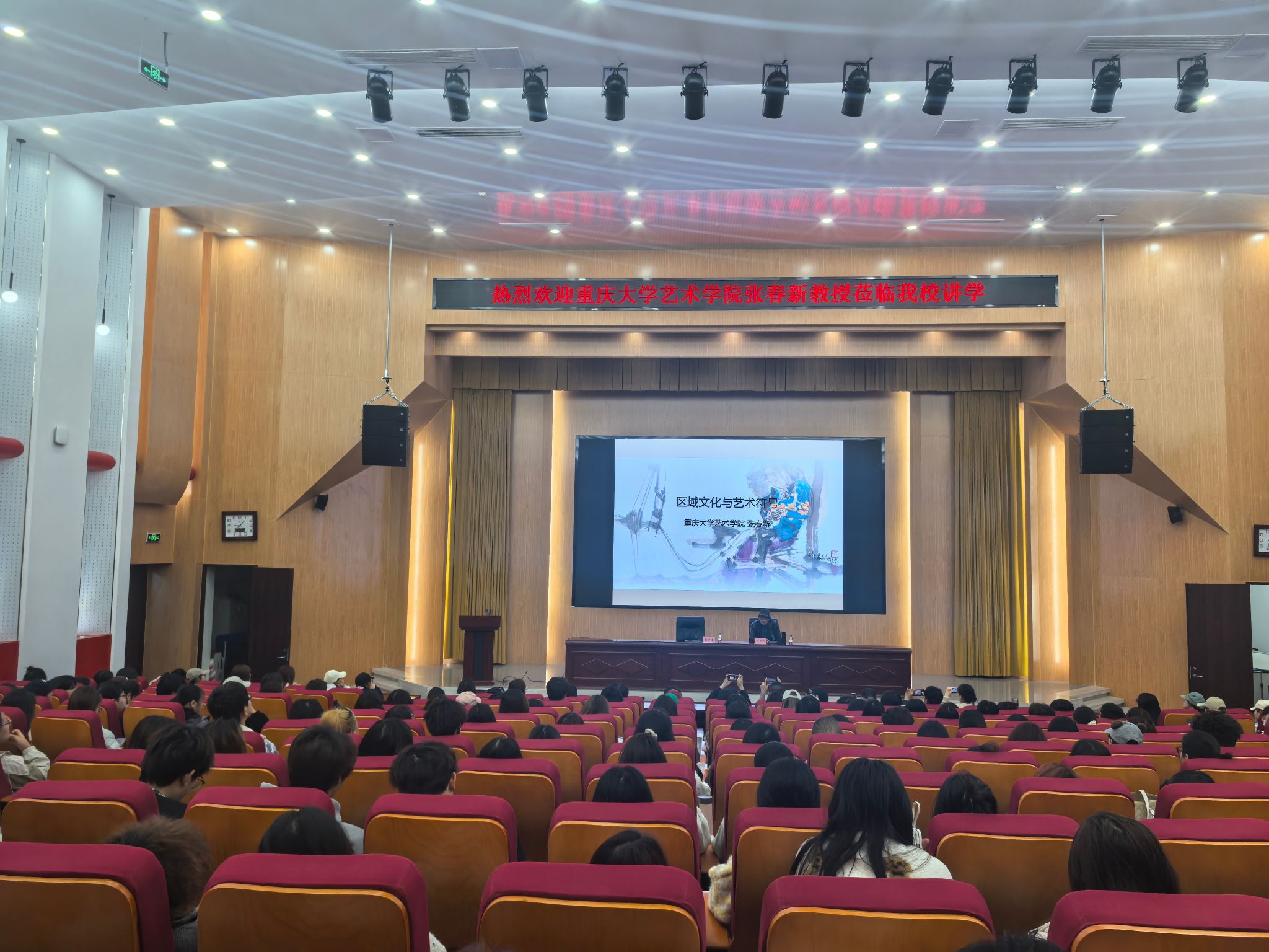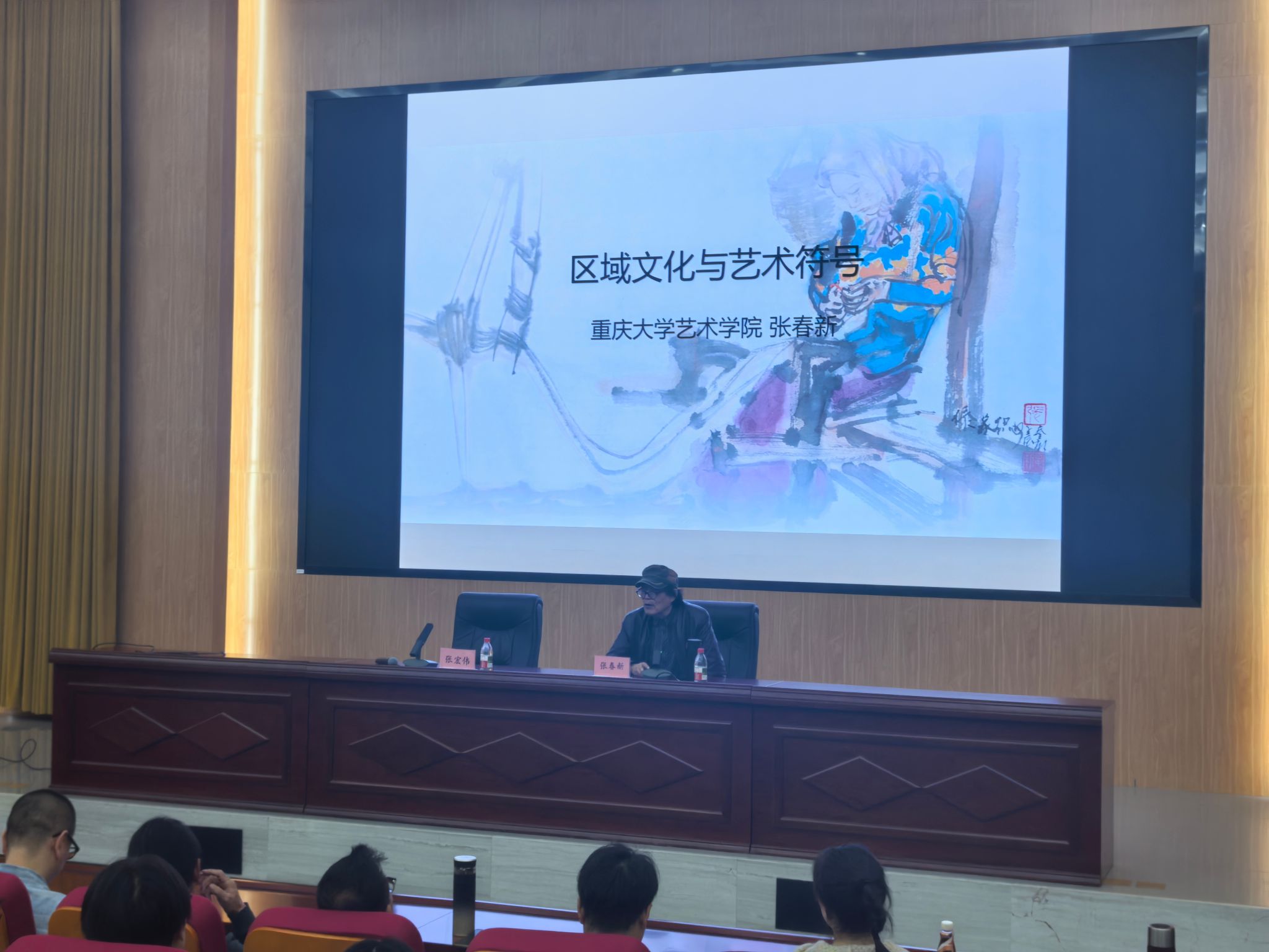 为深化美术学专业学生对艺术创作本源的理解,提升从生活中提炼艺术符号的能力,4月14日,由美术学院主办的《区域文化与艺术符号》学术讲座在博学楼多功能厅举行。本次讲座特邀重庆大学艺术学院张春新教授主讲,学院相关领导、专业教师及美术学专业全体同学到场聆听讲座由张宏伟院长主持。