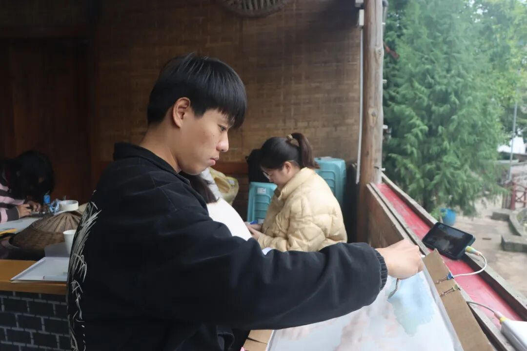 当日,师生们先后走访了民强村的多个标志性景点,包括历史悠久的李氏宗祠、依山而建的青山里悬崖部落、充满巴渝风情的长寿大院子以及环境优美的云岭间露营地。这些地点既保留了传统建筑与民俗文化的精髓,又展现了现代乡村旅游的活力,为学生们提供了丰富的创作素材。