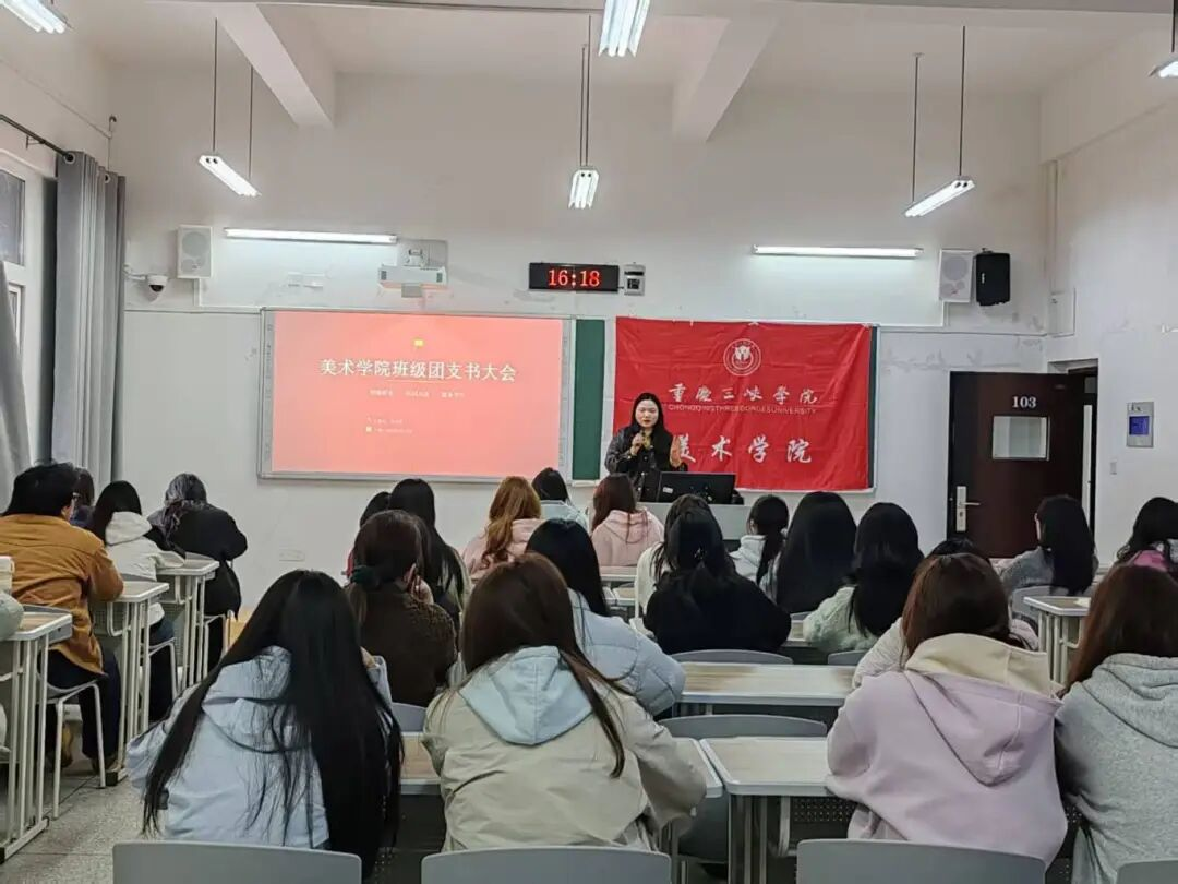 为明确新学期团支部工作方向与团员成长目标,部署各项团务工作,凝聚支部向心力与战斗力,美术学院团总支于2026年3月12日在博学楼2-103召开美术学院全体团支书大会。此次会议由美术学院团总支副书记匡中霞主持,全体团支书参加。