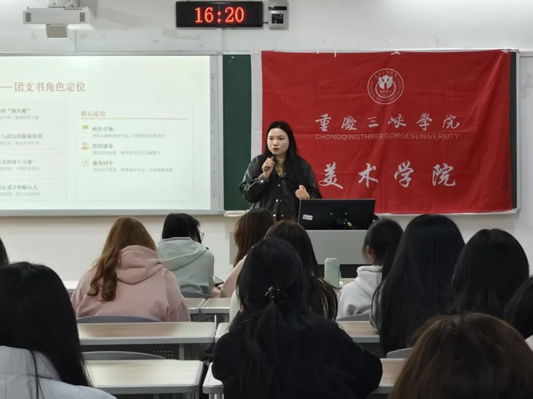 最后,匡中霞老师提出三点要求:一是要强化责任担当,充分认识到团务工作的重要性,以高度的使命感和责任感投入到各项工作中;二是要注重工作创新,结合美术学院的专业特色,打造具有学院品牌的团学活动;三是要加强团队协作,密切配合学院团总支及其他学生组织,形成工作合力,共同推动学院共青团工作再上新台阶。