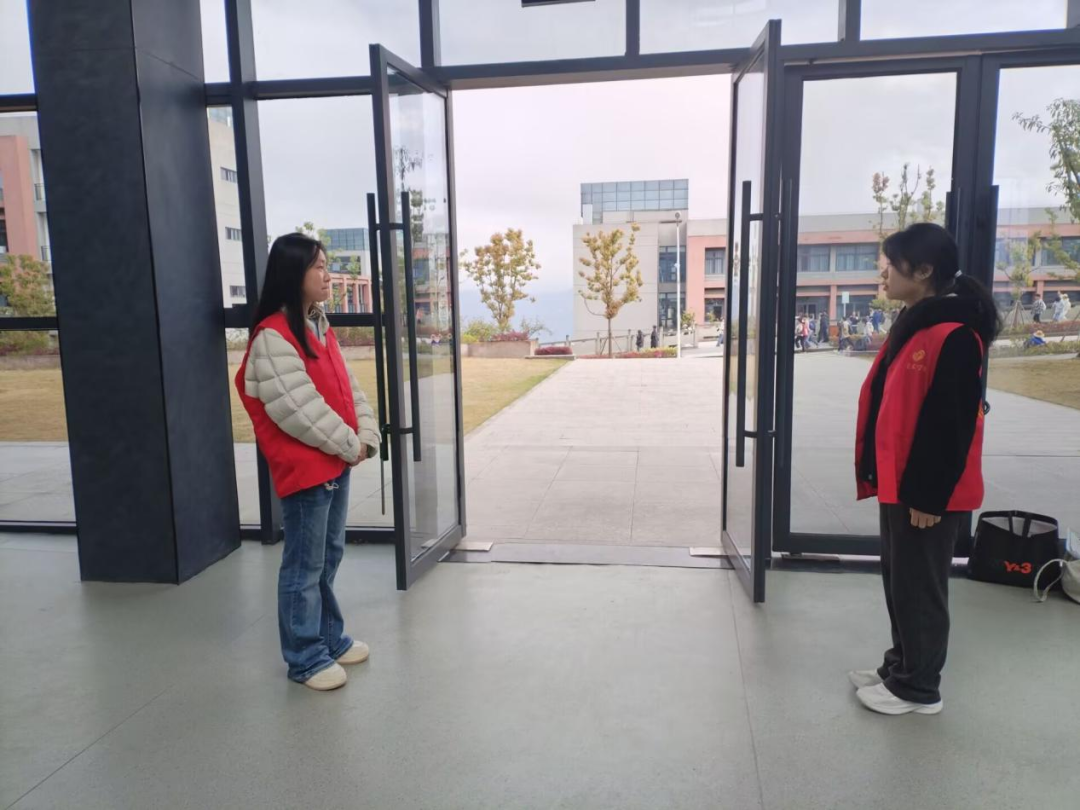 执勤人员统一佩戴标识、准时到岗,对携带早餐、着装不整等不文明行为进行文明劝导。他们既当好秩序监督员,也争做学风宣传员与示范员,切实维护了良好的教学秩序,同学们的规则意识显著增强,文明素养也大幅提升。
